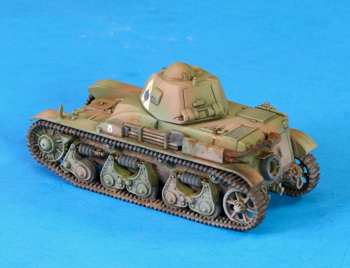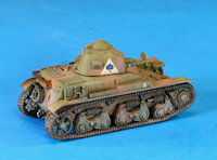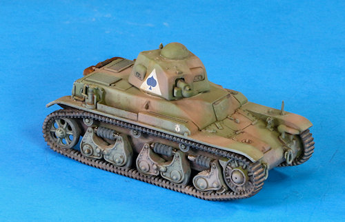 kit is built OOB. There's no reason for me to post photos of the kit parts prior to construction, since we already have a great Preview of this kit from Stephen, which shows most of the kit pre-construction. Which is good, because I failed to make scans of the kit parts regardless. My own observation on the kit construction is that it was incredibly simple. As with most S-Model kits, the weakest part (for us static display modelers) is the running gear. Very over-simplified in order to mold them in single parts. But given that, the outside detail of the wheel units is very nice. The tracks are not detailed on their outer surfaces, and took quite a long time to remove the molding seam from between each link. Judicious use of pigments hides most of the lack of detail on these parts. I painted the model with ATOM paints from AMMO by MIG. I first painted the sides of the turret white, masked off the triangles on each side, and then painted the camouflage. The decals are from MiniPrint (Editions du Barbotin). If I was going to build another one of these, I would add a few more details, and try to replace the running gear with a 3D-printed set from Syndikate Co. It's made for the First-to-Fight R35, but perhaps it can be made to fit this kit as well? Even though I am not doing a complete evaluation of kit accuracy, I took the opportunity to measure the completed model against published dimensions. Turns out that scale plans and dimensions are hard to find for this tank. I found some dimensions listed in an old AFV Weapons Profile (#59), and Wikipedia has measurements that are very close to that old source. Additionally, there are scale plans in Wydnawnictwo Militaria's 355 Plan Pack Vol. I, which when measured, produce the same numbers as those given on Wikipedia. Accordingly, the kit measurements match these numbers almost perfectly, and thus I am confident that this kit scales out very well to 1/72nd. |