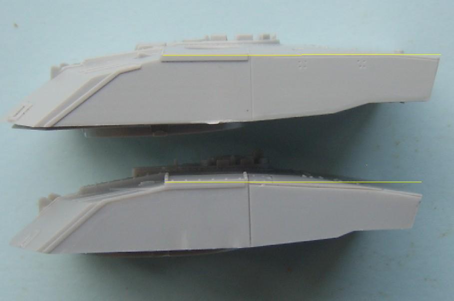 There is no easy comparison as to which is correct and to which is wrong, as both are wrong ! both kits have their good and bad points, unfortunately the bad are really bad and there is no easy answer as can be seen in part 2. What is more amazing is that Dragon have published a set of Challenger 2 drawings in the Concord mini colour series that shows the correct turret and hull long before the model appeared, and Trumpeters Instruction also show the correct turret profile with correct roof height, so how both companies messed up so much baffles me!.