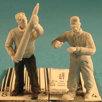 | FIGS 4/5: Figures 4 and 5 come from a Milicast Soviet AFV crew and were a simple conversion of switching arms and heads and a minor bit of resculpting with the reaching arm at the back. |