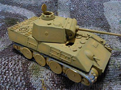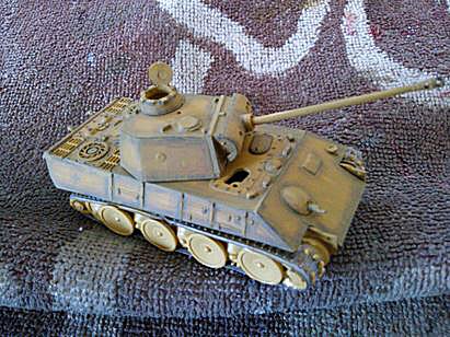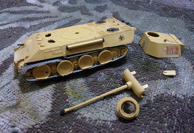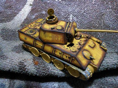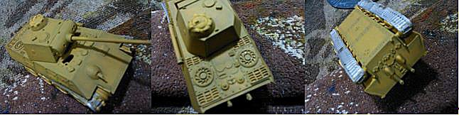I gave the tank a first layer of the base colour, acrylic desert yellow, without any special care. Of course, the paint must be thinned to be brush painted.