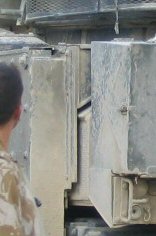 The new hatch that is now becoming standard, is actually the same hatch as the Desert Warrior. Warrior Reactive Armour Programme 2 This is the latest armour fit for the Warrior and consists of a new arrangement for the bar armour and new ERA bricks to the sides instead of the Chobham armour used previously. The bricks are mounted on an armoured plate on each side. So far in Afghanistan the Warriors have been seen without the bricks fitted and only the bar armour. This is presumably because the insurgents are not using modern tandem warhead AT missiles. The belly of the warrior has also been up armoured with a new belly plate for more protection against IED's, transparent armour for the BGTI sight of the gunner and wire mesh protection for the commanders sight, along with protection around the hatches for when operating opened up. A new ECU similar in shape to the previous one but with different openings and rear mountings for various antenna. The frontal armour has also substantially changed and now lacks the front bin of the Chobham armour.