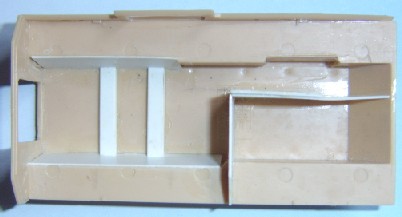 Other modifications made This section is not so much about the modifications needed to make a better Warrior, although a few are applicable. It is more to give hints and ideas for those who want to detail further, and will look at the Uparmoured Warrior, MRCV, MSTAR, Command Post, Milan and various other Warrior variants in service, as well as building an interior. Although most of these are available from CMSC as sets for the basic kit, each are not without their problems. One thing to note for the more adventurous of you, is that if you plan to build an interior, and there are many good photos on the web to help you achieve this, you will need to remove some plastic from the hull tub before attaching the track units. This is because the hull tub takes up internal space, which would make the interior too narrow. This is one of the problems with the PDI interior, to try and regain the illusion of space, PDI have made the seats very narrow, for anyone but a midget to sit on. The following photo shows where the plastic needs to be removed from. The forward portion is for the driver.