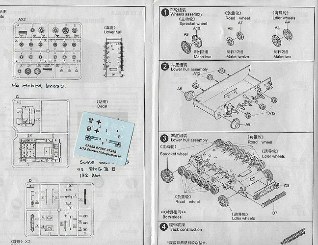 A, Ausf. B and Ausf. E kits. At upper left is assembly of the 7.5-cm
