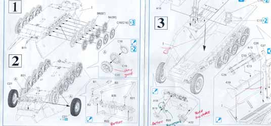 II. Assembly Instructions Both manufacturers give us the standard black and white, exploded-view type of assembly instructions with clear sprue and part numbers.