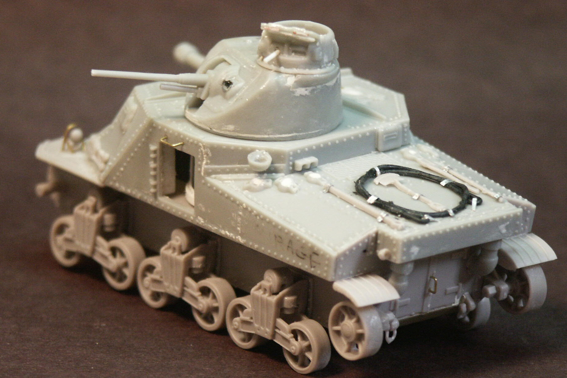 Above is the mostly assembled Mirage M3 Lee model. The brass headlight