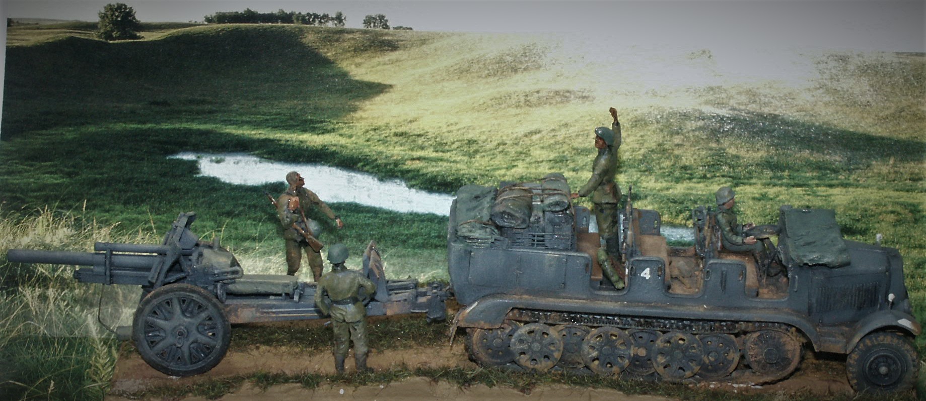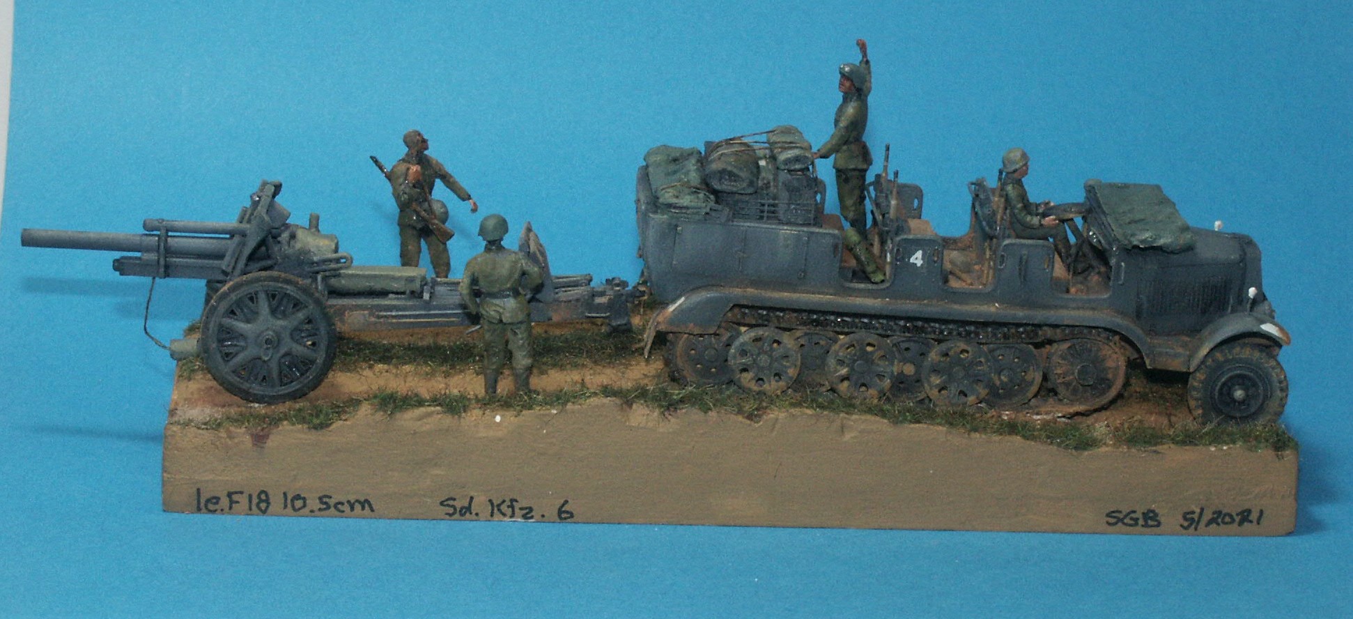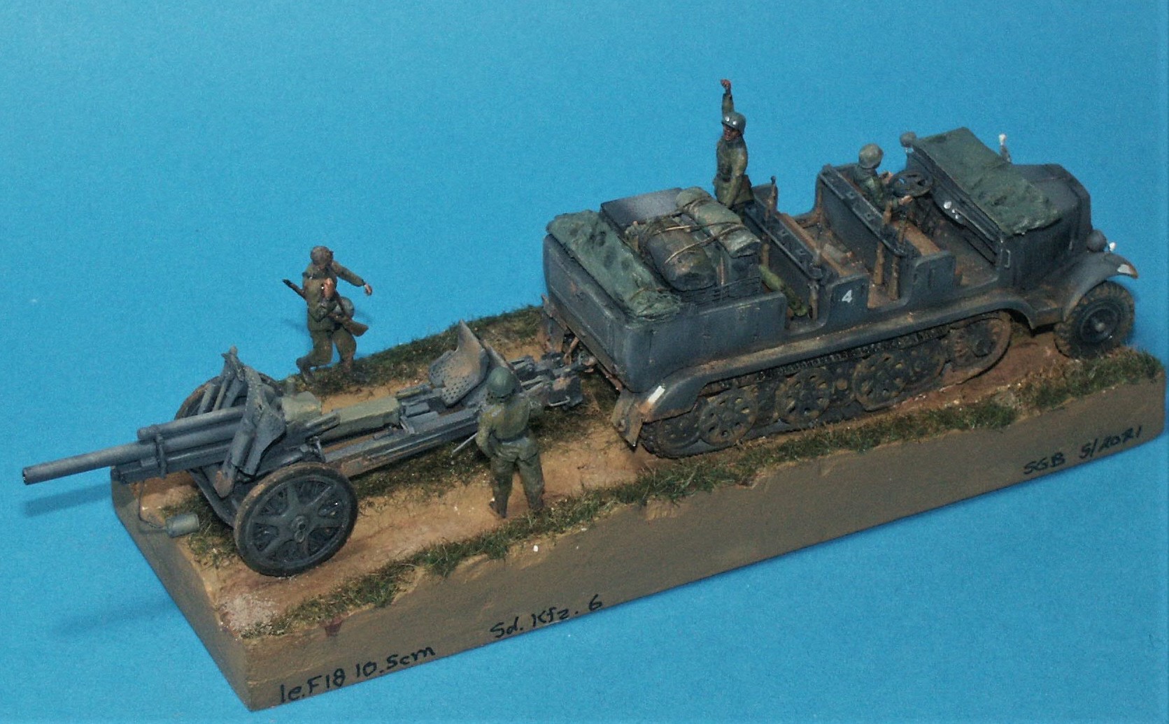 to 1/72 scale Sd.Kfz. 6 halftrack with First To Fight leFH 18 gun.