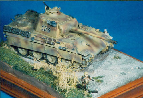 Paolo's Panther A is from Revell, and detailed with plastic sheet and metal from a Coke can (!). The soldiers are from ESCI and Revell. You can find Paolo at his website, with more photos of this Panther.
