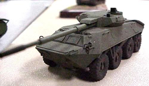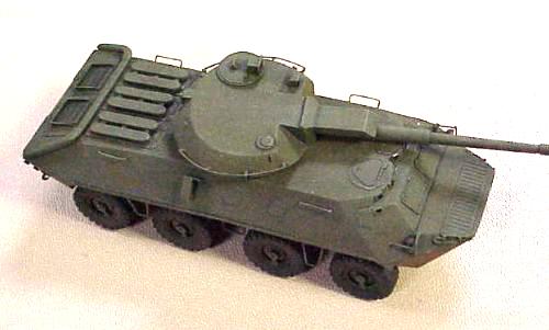 It is an experimental tank destroyer based on the BTR-70 made in the 1970's. It was armed with 85mm gun but didn't go to production beacause the armor penetration of the gun was not good enough. One was built and is currently residing in the back of the Kubinka tank Museum. The model is a conversion of the Planet models BTR-70. The turret and a gun are scratch built.