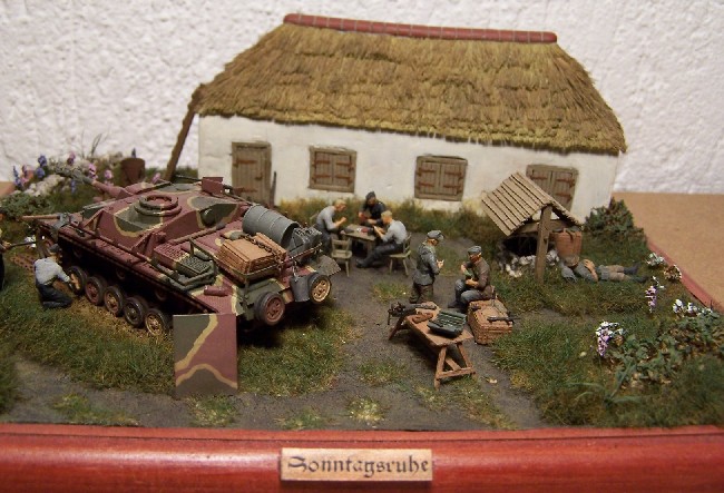 Revell Sturmgeschutz III Ausf. G (03132). Crates from Preiser. Figures from Preiser (72507 and 72505).