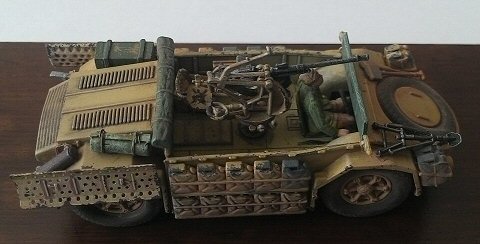 vehicle was painted with light sand from Tamiya (spray TS-46), washed