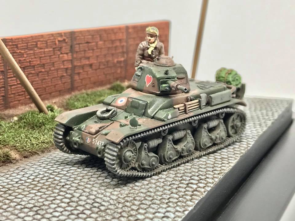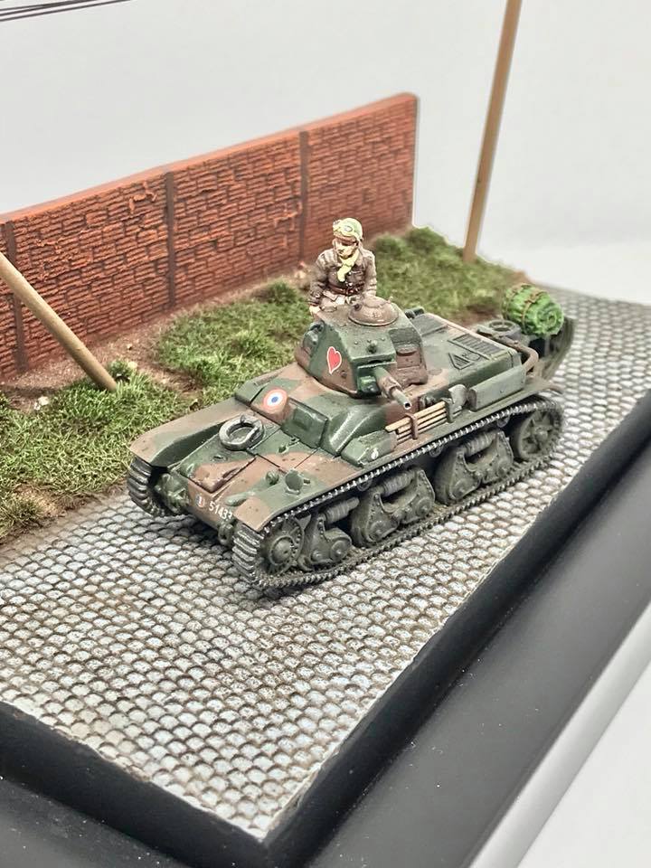 Olivier's build is a mix of RPM and S-Model kits. The figure is from AB Figures. The scene depicts a vehicle during the Battle of France May/June 1940.