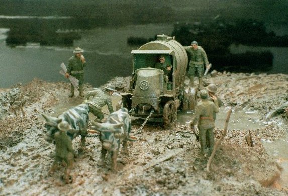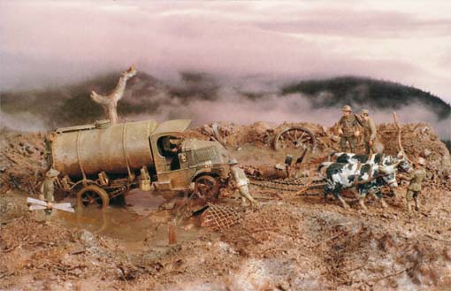 "The basic kit is from Jordan - a conversion of a Mack truck. The actual kit is in HO, but I converted it to 1/72. The figurines are conversions of ESCI & Airfix figurines in 1/72."
