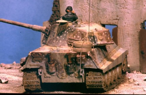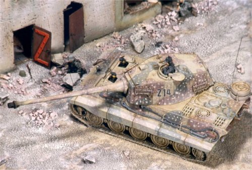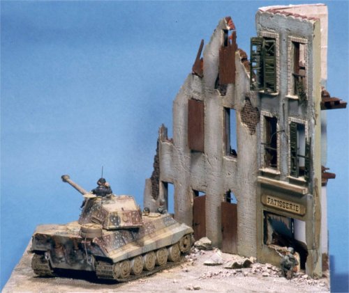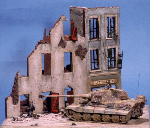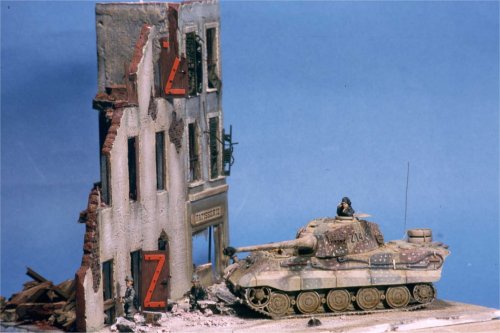 The King Tiger is by ESCI, the figures are SHQ, and the building is scratchbuilt. Visit Paolo's website.