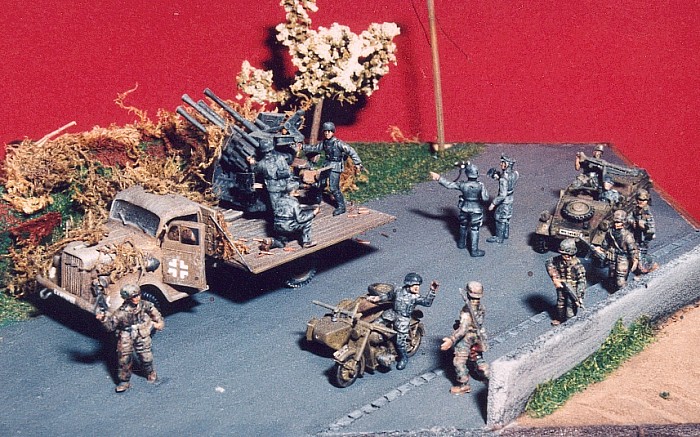 Opel blitz from ESCI; Kubelwagen from Hasegawa; BMW from Matchbox; figures from ESCI/Airfix/Matchbox