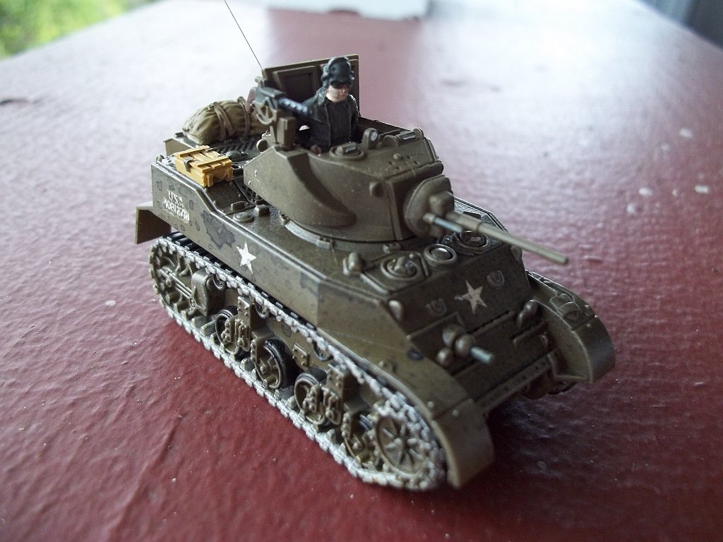 | This is the Plastic Soldier Co. M5A1 Stuart late production quick build kit. Kit comes with 3 options. I didn't use the sand skirts. |