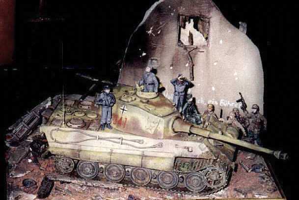 This "Defending the Homeland" scene features Esci's Tiger II with full scratchbuilt interior, Esci figures as well as soft infantry figures.
