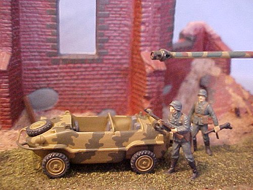 The vehicles are a King Tiger by ESCI, and a Schwimmwagen by Hasegawa, figures by Revell.