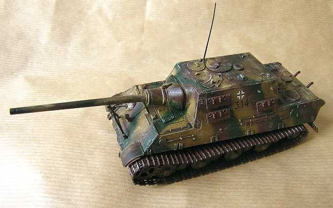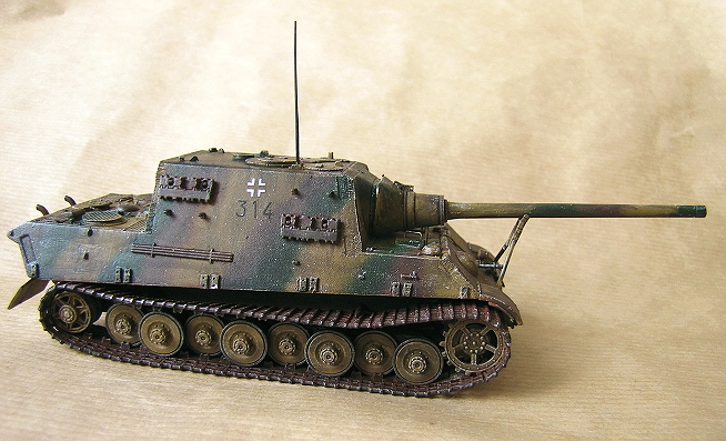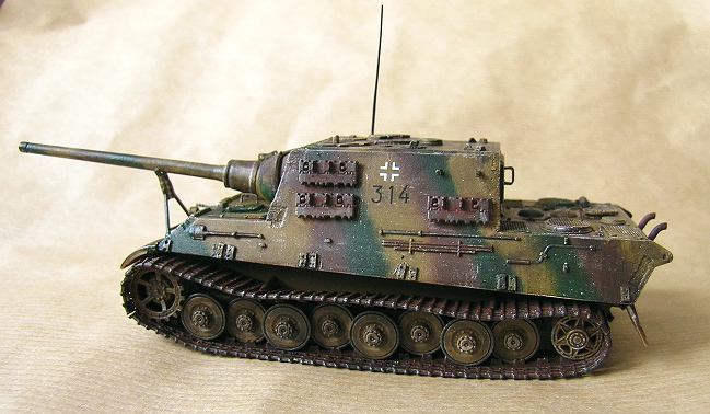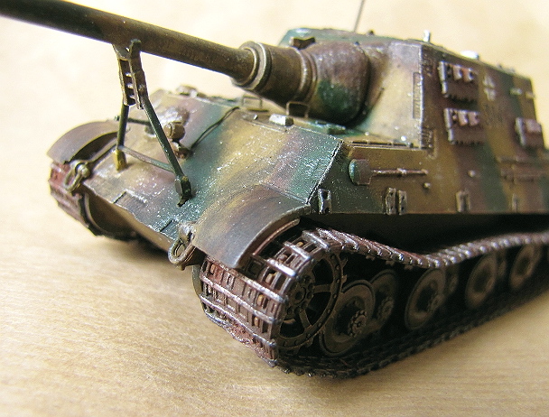 | Built almost straight out of the box as an approximation of one of the few Porsche versions without zimmerit coating. The rubber tracks required guiding pins to settle. |