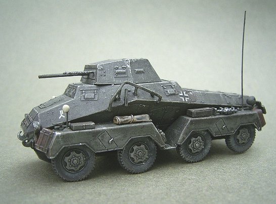 This new "8-rad" by Roden is built almost straight out-of-the-box. Some equipment have been added, (such as width indicating gauges, towing hooks, tarpaulin rolls and an antenna). The edges of the side fenders have been thinned down to approach scale thickness and the frame antenna installation holes (which are a Sd.kfz 232 feature) on the body and turret have been filled up. The markings are of the 2. Panzer Division while positioned in Balkan and Greece in 1941.