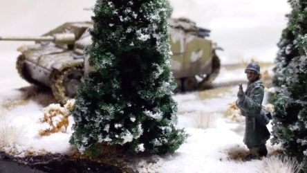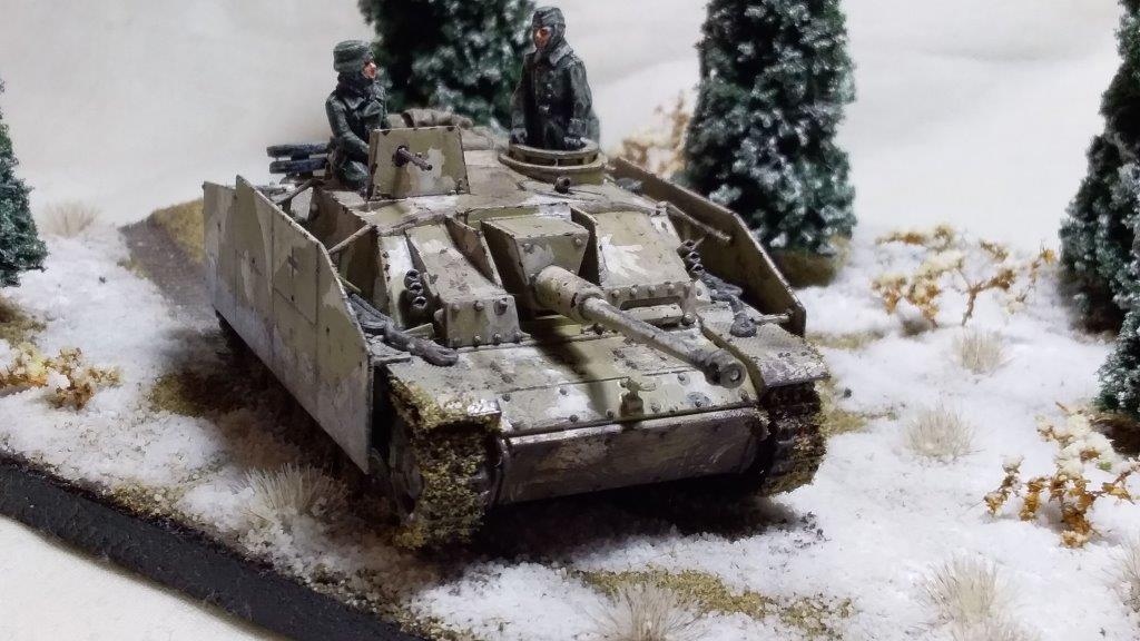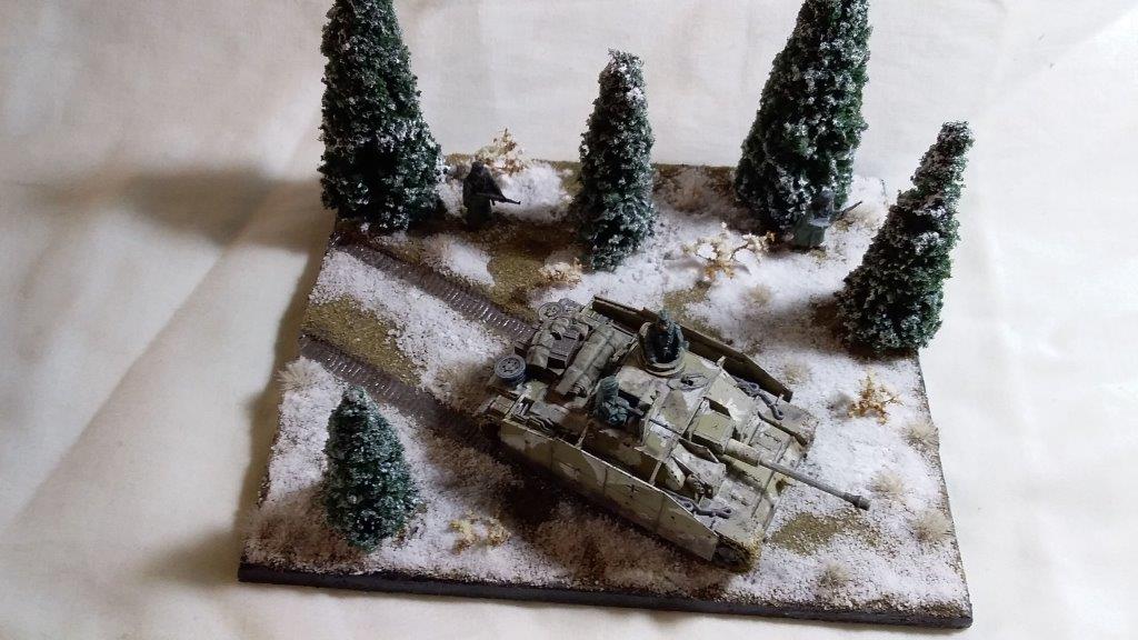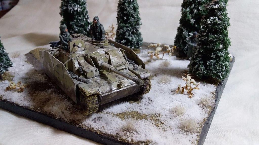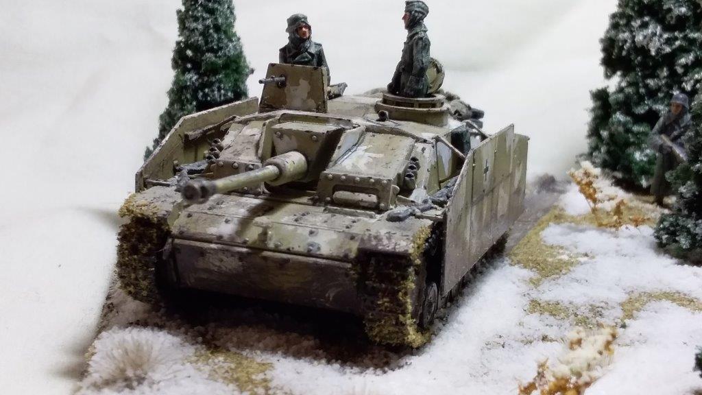 are some pics of my Dragon Sturmgeschütz III early version. It has an AB Miniatures crew and Italeri accompanying infantry. All scenic material is by Woodland Scenics. |
