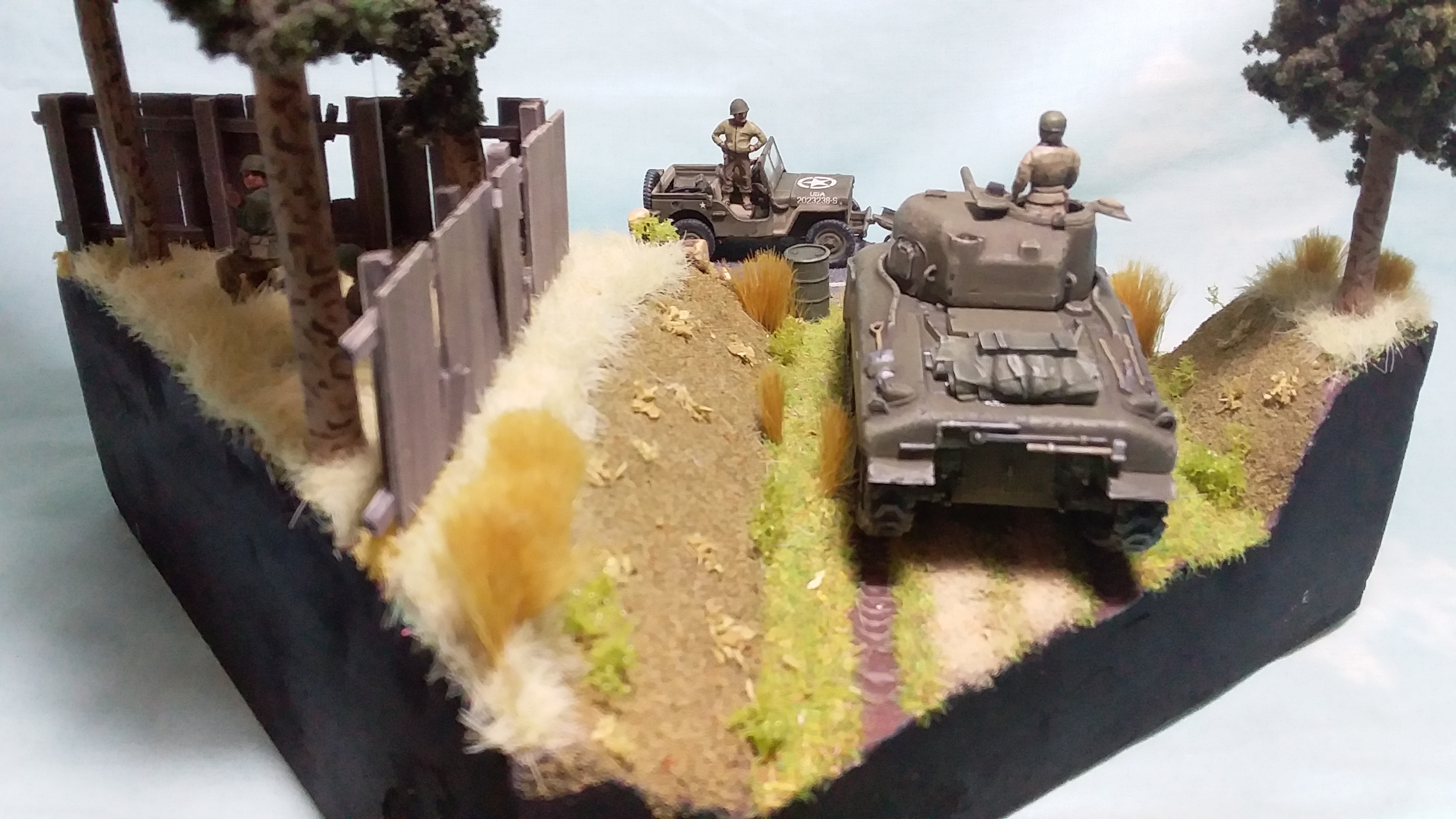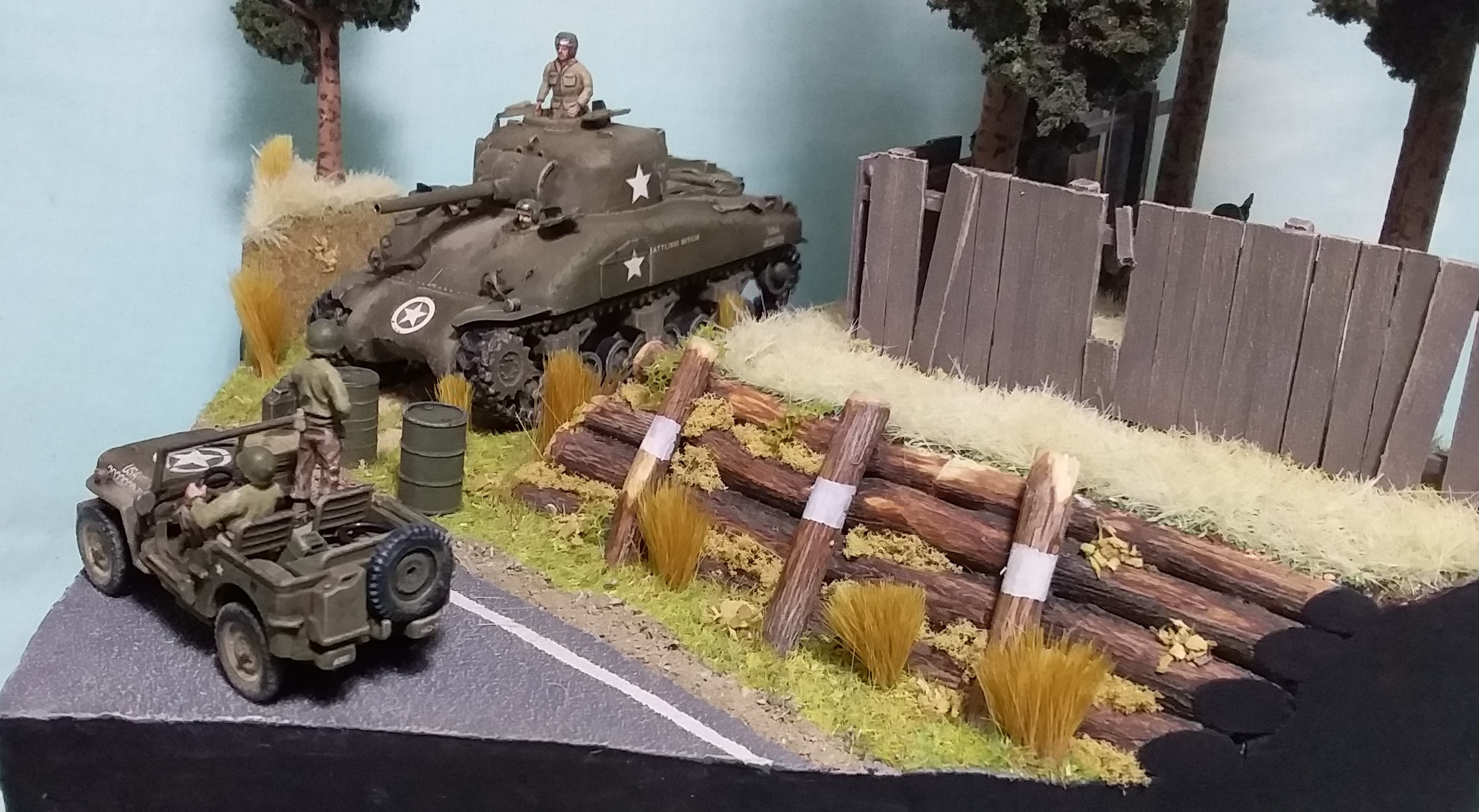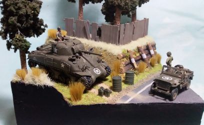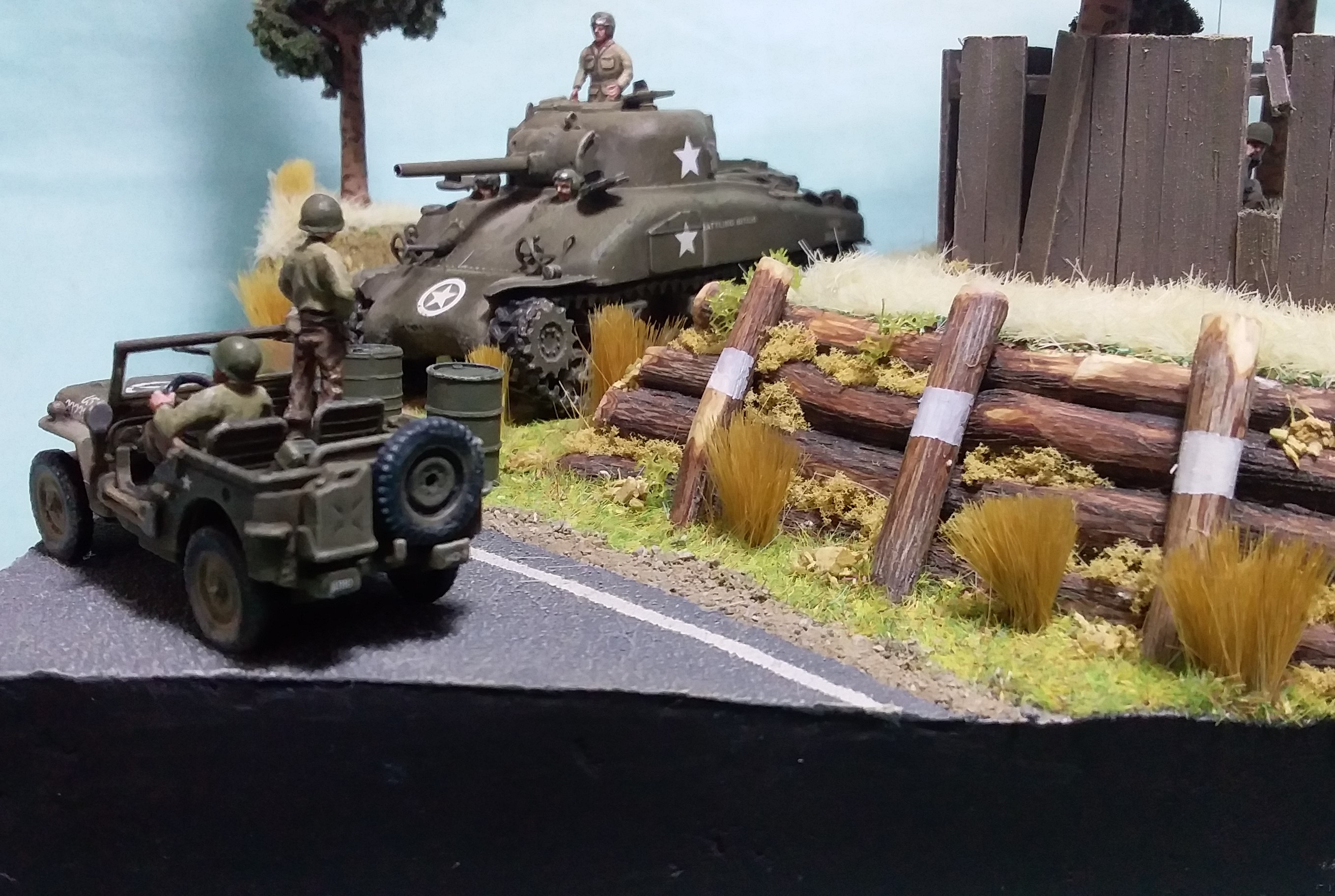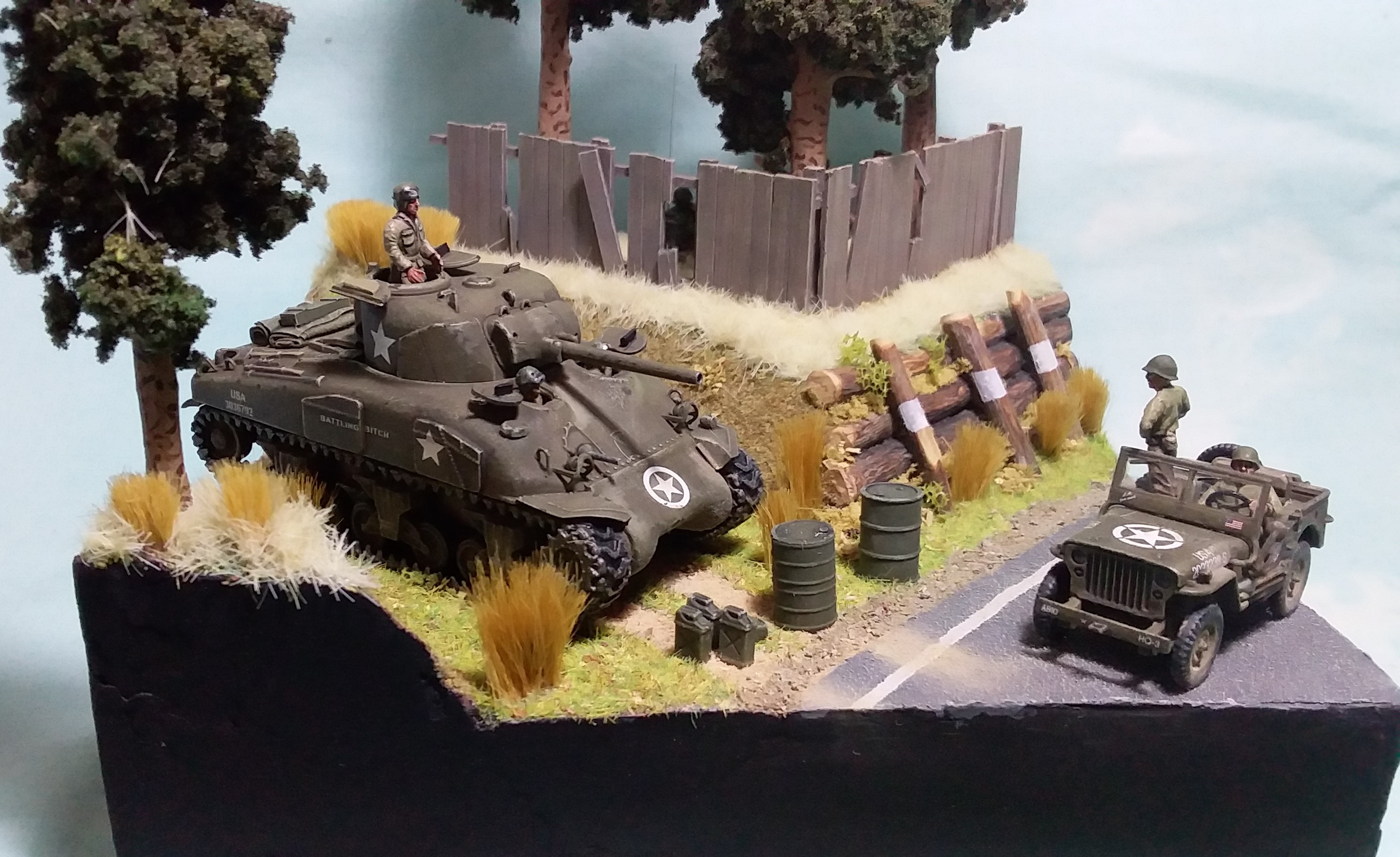 The M4 A1 Sherman is by Dragon and the jeep is Airfix.