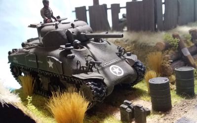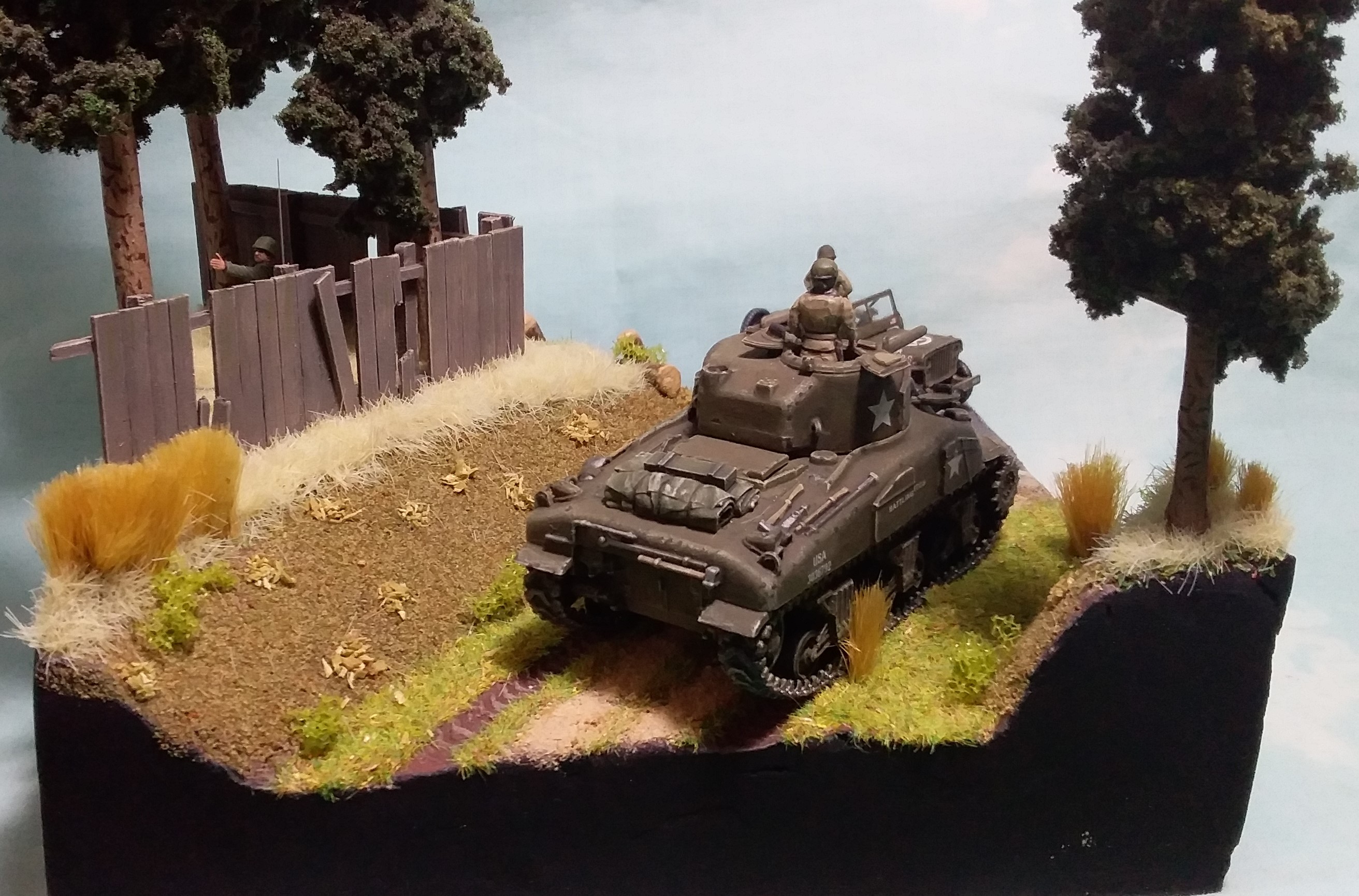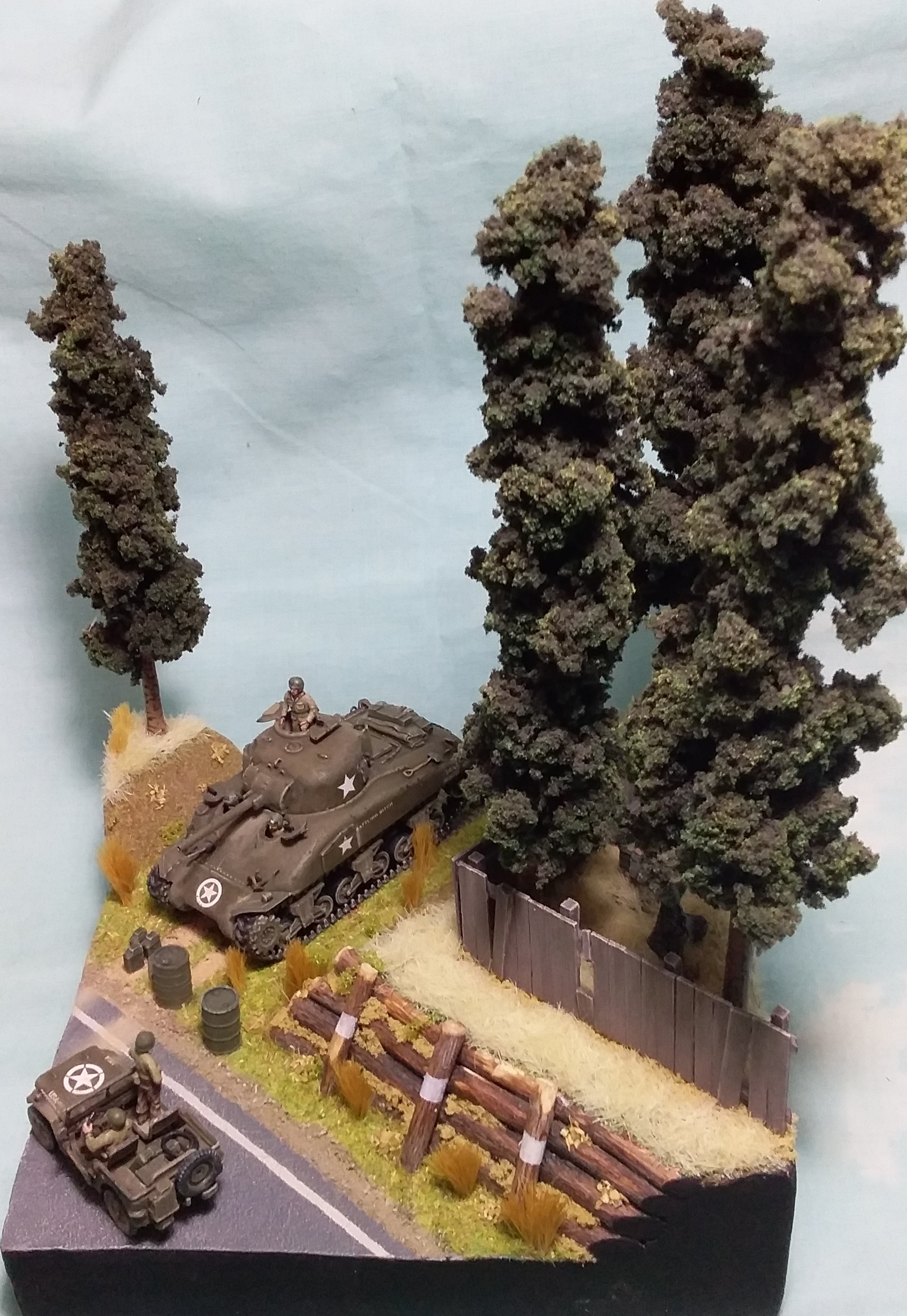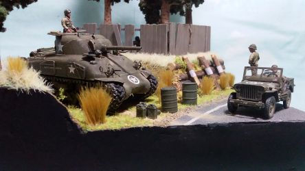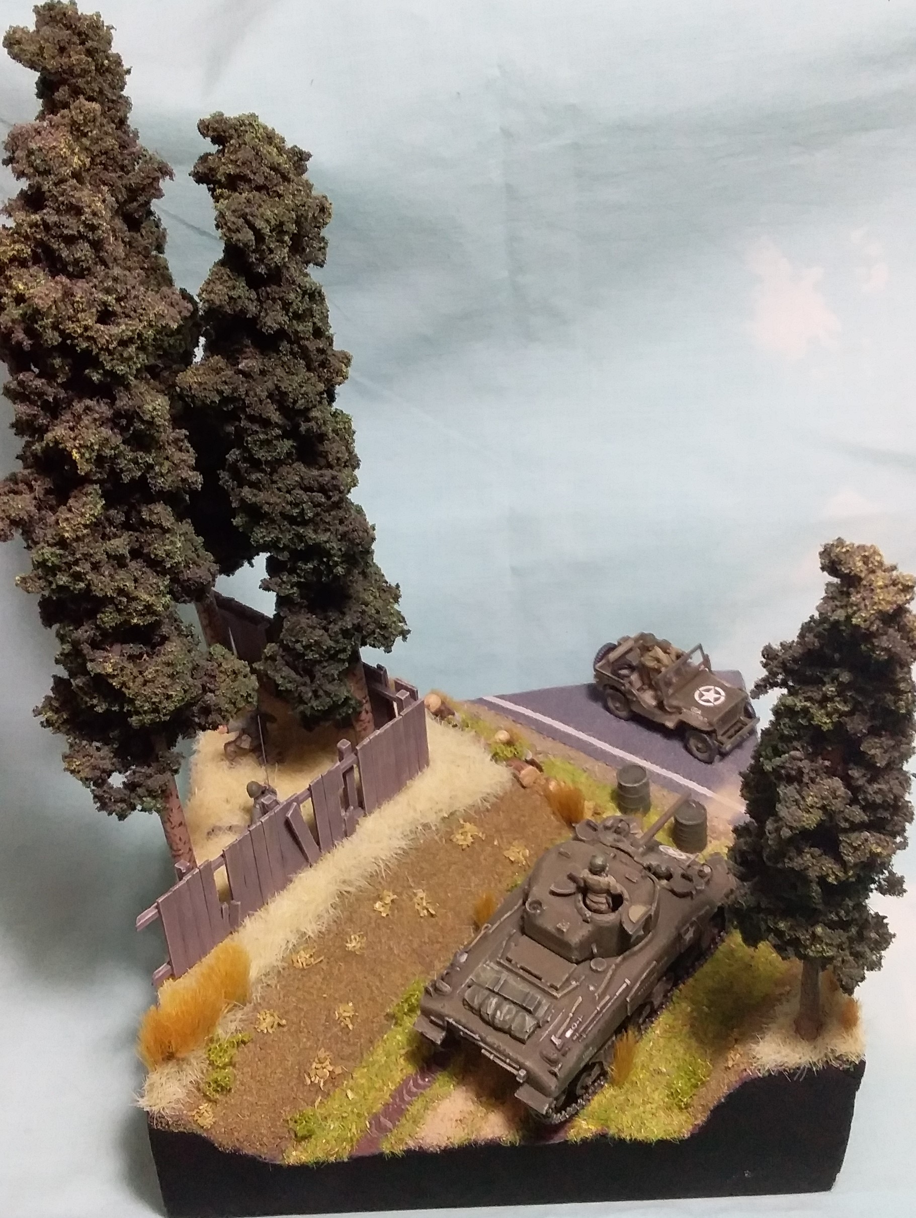The M4 A1 Sherman is by Dragon and the jeep is Airfix.