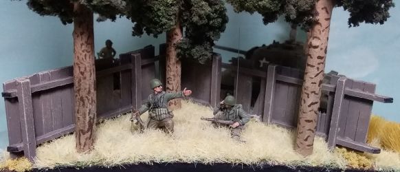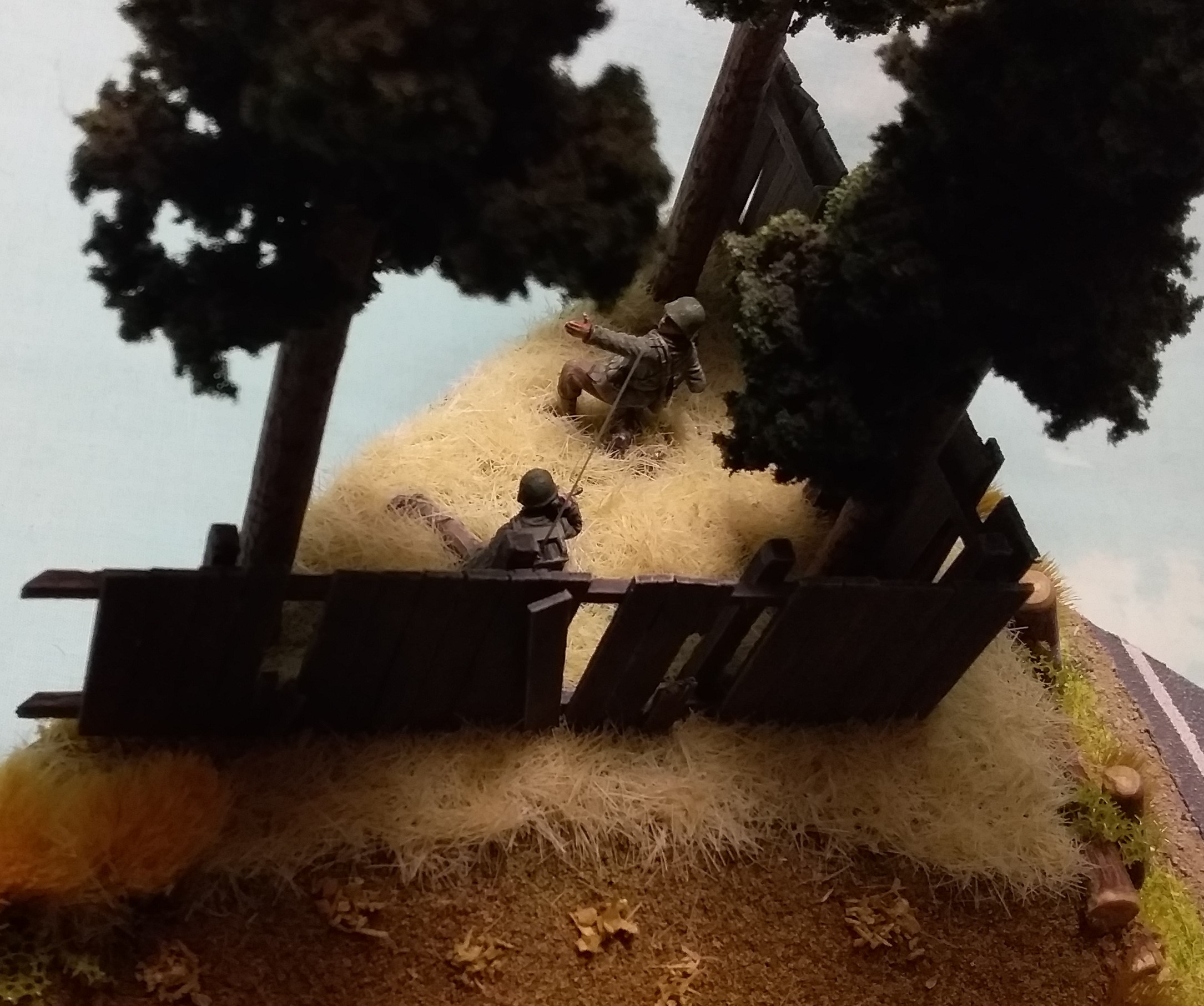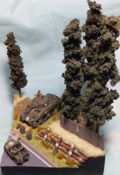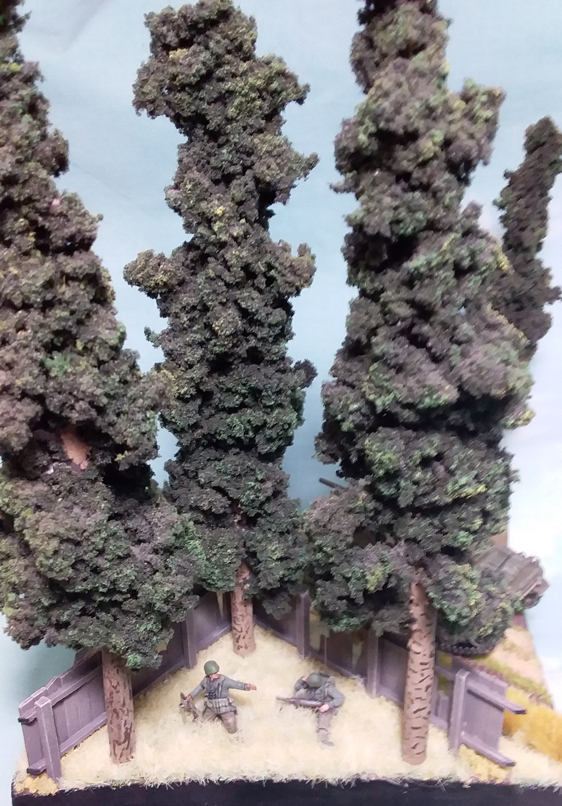 The pine trees are by Woodland Scenics. I painted the trunks and dry brushed the foliage to try and make them look more realistic.