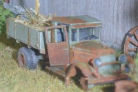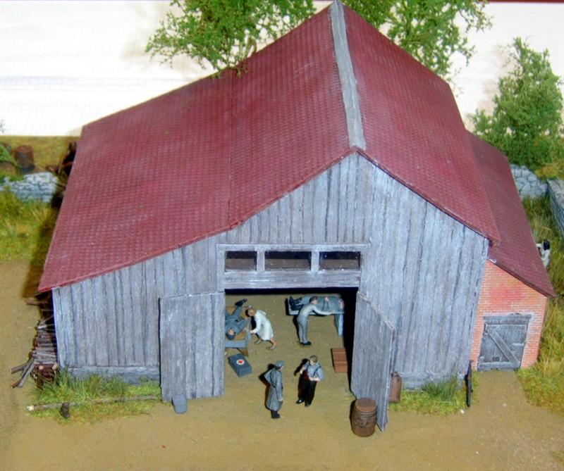 The barn is scratchbuilt from wood and paper, with a roof from Styrodur. The stonewall is also scratchbuild from clay.