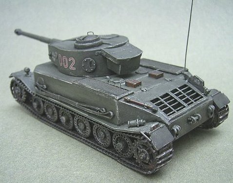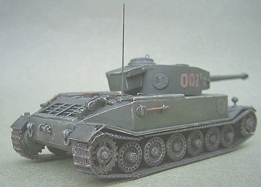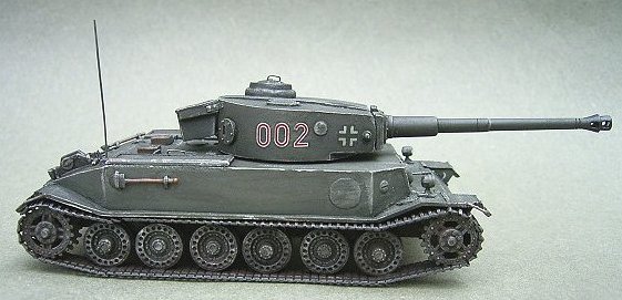 Dr. Ferdinand Porsches' suggestion for a new German heavy tank in 1942 was not accepted and the majority of the produced chassis were converted to Ferdinand/Elefant tank destroyers. Only five prototypes remained. This model is built the other way round: the Italeri Elefant kit is backdated to a Tiger (P) by incorporating a modified Revell Tiger turret, scratch-building the hull top and rear and adding some details from the spares box, stretched sprue etc. Special thanks to Bram Corts and Björn Bäcklund for information on the subject.