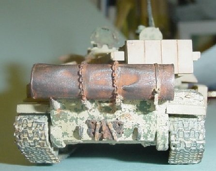 Scratch built details and rear fuel drum and some of the PART T-55 PE set, and an ARMO barrel.