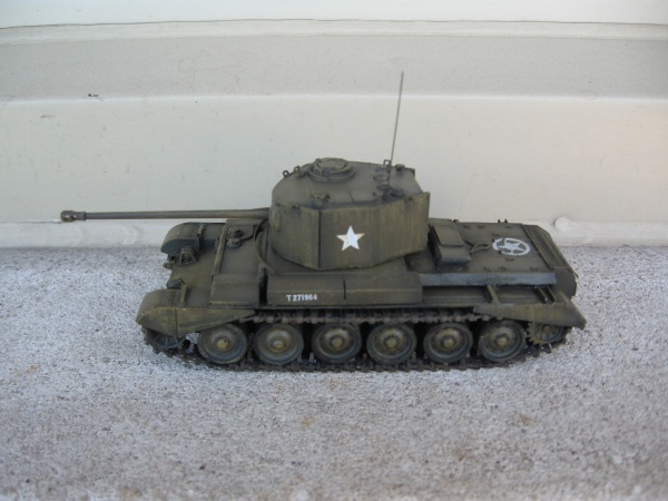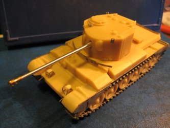 | Christopher used the Italeri Churchill tracks instead of the kit tracks, but did use the kit's photo-etched centerline track teeth. |