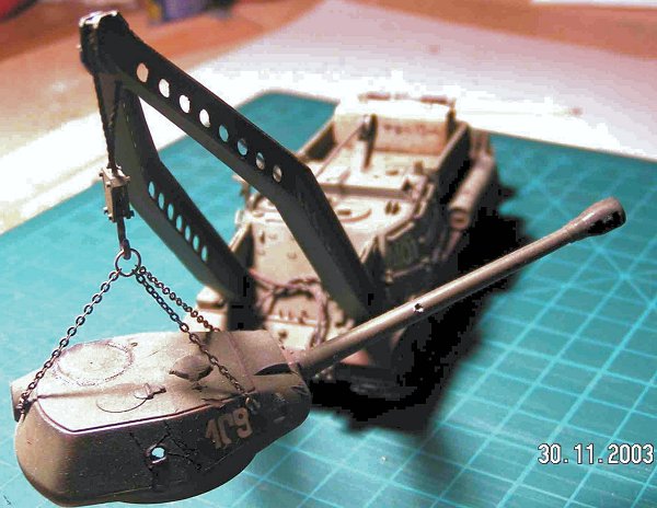 This is a post-war Soviet recovery vehicle; a scratchbuilt conversion of the PST ISU-152 kit.