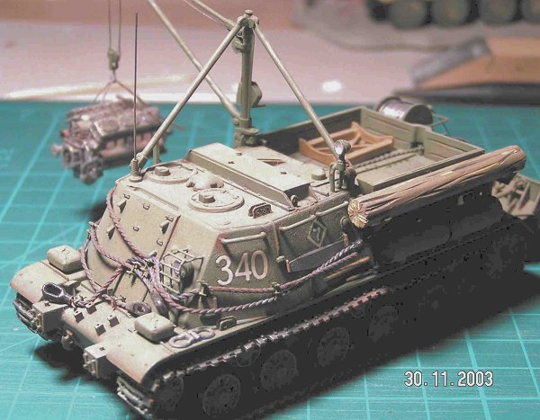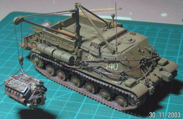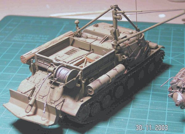 This is a post-war Soviet recovery vehicle; a scratchbuilt conversion of the PST ISU-152 kit.