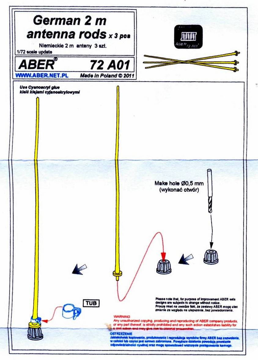 | 72A01 | German 2m antennas | Three tapered metal rods with a circular base, but not the actual mount, of the correct height and thickness. A photo-etch clasp is also provided- R. Haelterman | |||