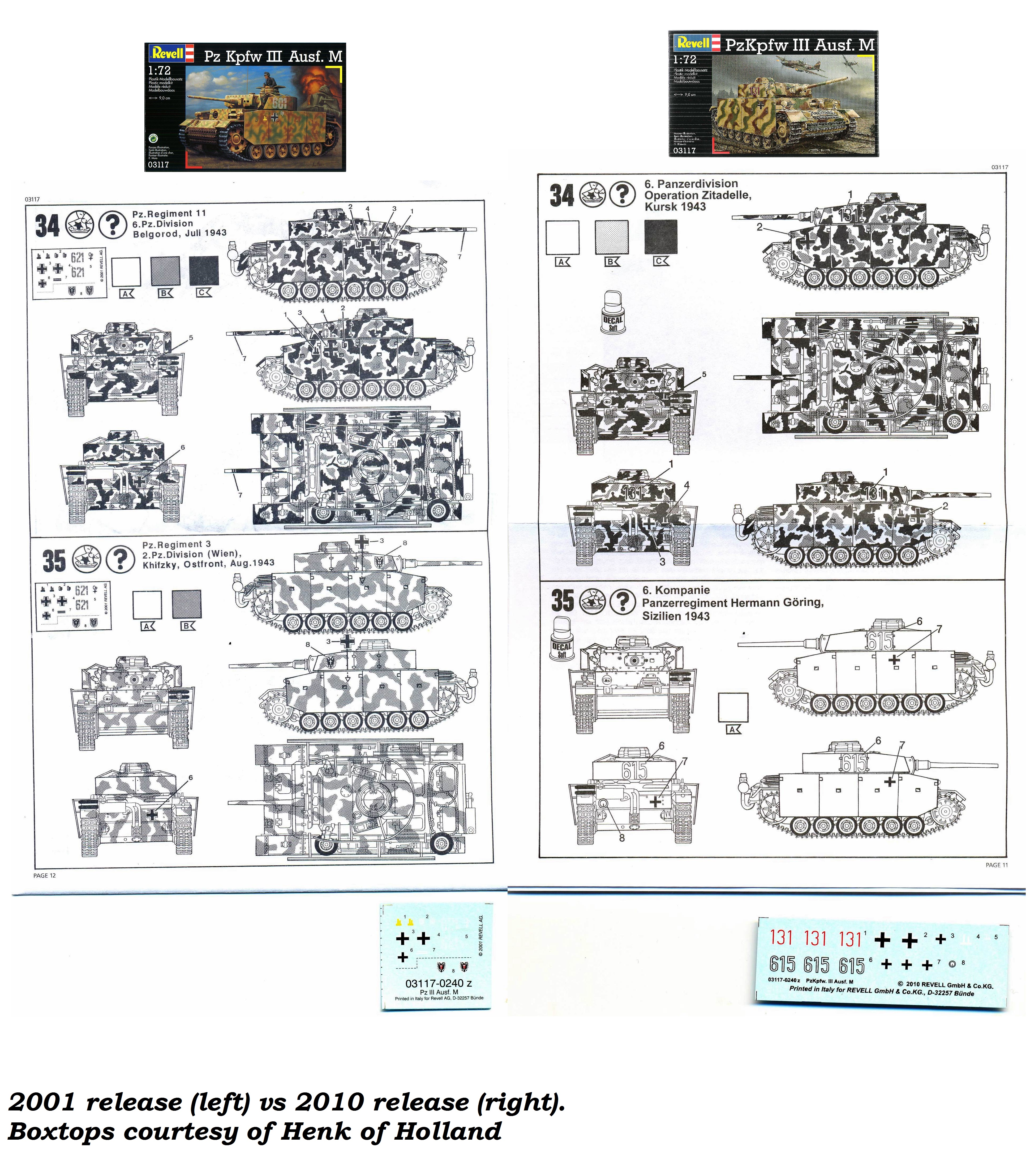 on Revell's website, there are no figures included. Shortly after 2010 the kit was re-released with slightly a different boxtop and different marking options. Mostly, when Revell re-releases a kit, the reference number is changed. In this instance it was kept. A comparison can be found here. Note that the older release has a marking option for a vehicle of 6 Pz.Div., turret number 621, which probably represents this vehicle. If so, then the camouflage pattern is incorrect and the real vehicle might not have carried Nebelkerzen on the turret. - Timothy Lau & Rob Haelterman |