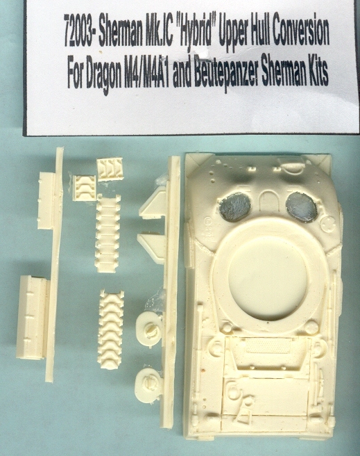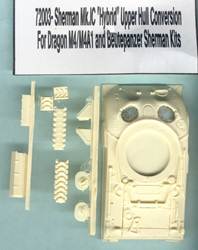 This Sherman conversion set is designed to convert our regular 1/72-scale M4 or M4A1 kits into a Sherman 1c Firefly Hybrid kit, i.e. a 17 Pounder armed M4 Composite hull in US Army vernacular. The term “Hybrid” is a British term. This is one of my favorite Sherman variants!
