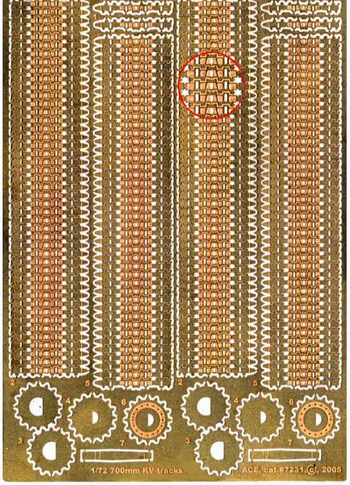 Tracks developed for PST "early" KV kits - this set imitates 700mm KhPZ (Kharkov) tracks. It also includes new teeth with correct shapes and dirt remover.