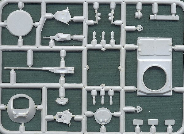 Based on ACE's earlier MT-LB kit, this model represents an "urban combat" version of the most ubiquitous MT-LB armored vehicle. The majority of the kit is the same as the earlier model: The wheels and tracks are very well made, and the entire kit is very highly detailed. The following sprue is unique to this kit, and while several sinkholes are present, the parts are quite detailed: A small fret of photoetched brass parts is included: