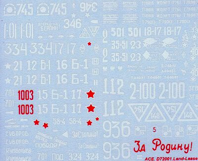 Ukrainian company ACE, which is well known for it’s modern Soviet/Russian armor kits, just made another bang by releasing a new line of products – this time it is a decal sheet Lend-Lease Tanks in Red Army (ACE D72001). This sheet is packed with emblems, digits, and stencils. Six M3 Stuart tanks, three M3 General Lee tanks, eight M4A2 Sherman tanks, six M3A1 Scout cars, one M2 Halftrack, one M17 halftrack, four Universal carriers, three Valentine IX, four Valentine IV, one Valentine VII, three Matilda tanks, two Ford GPA, and one Willys Jeep are represented – altogether 43 machines (!)