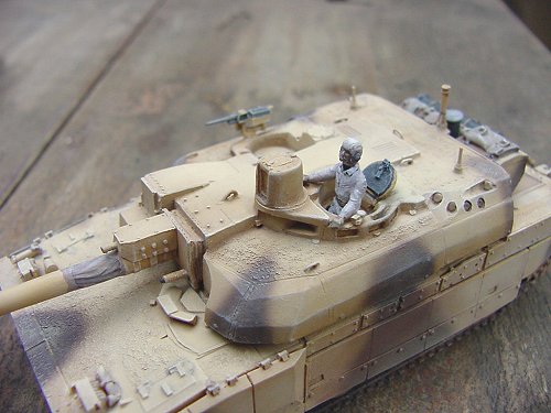 I have no idea if I matched the colors correctly, but the tan in the photographs looked very yellow, so I used British Gulf War Tan, which has a yellow tint, and Panzer Dark Brown, which matched very well to it. It would be really nice to replicate the camouflage netting which was often seen on these tanks.