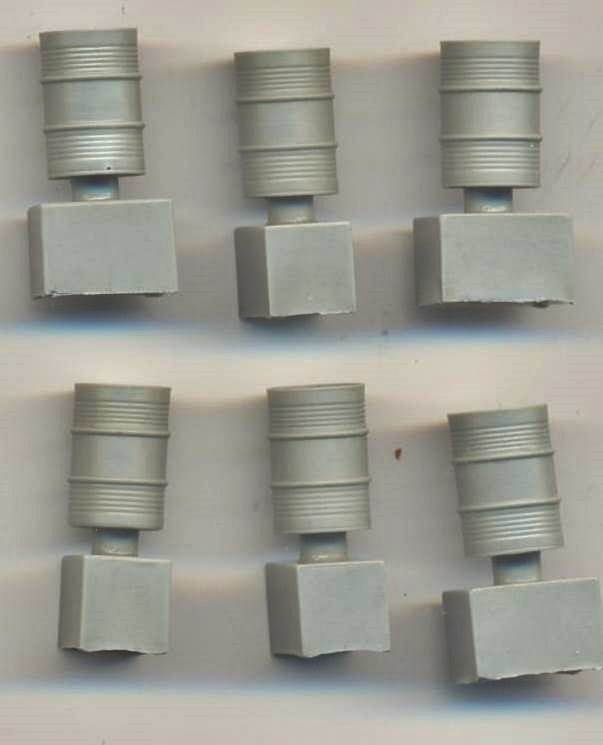 rim on the underside (where the pour block is situated). I measured the diameter at the top rim as 8.3 mm, while the height of the drum is 12.4 mm. This scales out almost exactly to 1/72 based on the real dimensions of 23.5 inches diameter (8.3mm in 1/72) by 34.5 inches high (12.2mm in 1/72) given by Will Alcott.