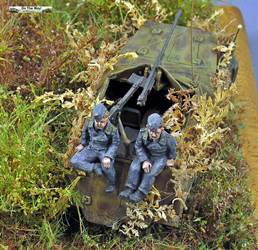 There is a nasty mold line on the MG42 and the casting of the Kar98k rifles that go inside the fighting compartment is poor.