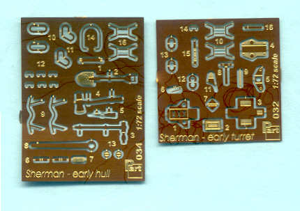 Sherman kit styrene plastic parts at the top of the photo. The roadwheels
