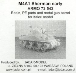 Over the past several months, ARMO has been releasing a series of conversion kits to be used with the Italeri (formerly ESCI) M4A1 Sherman kit. The conversions are intended to fill a gap in the availability of Sherman models with the early-style hull, which to date, have been provided only as a plastic wargaming kit from HaT, plus a superb example of an early M4A2 in resin from MR Models.