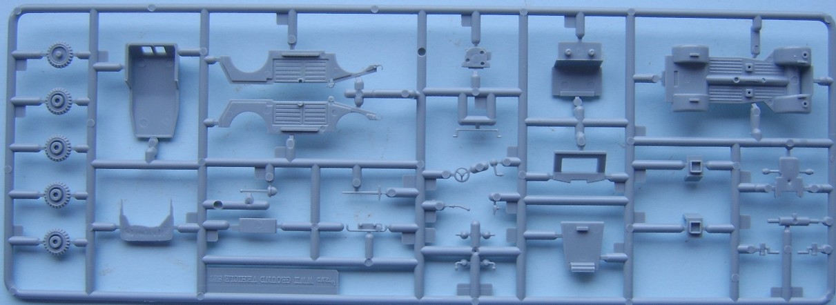 Although there is a comparison of the Kettenkrad in this kit, there has not been until now a preview of the kit. In the box are four sprues, one for each vehicle and one clear sprue for the windows and also clear parts to show the tiny engines should you wish to do so. First is the Kubelwagon, These kits are not as refined as probably later releases are, the hood can be modeled up or down, the interior is basically detailed although placement of some parts are an approximation such as the rear hand rail which actually attaches to the doors, there is a nice little engine included with a lear piece for the cover should you wish to display it so, a plastic cover is also included although really you could have just painted the clear part. The Second vehicle is the Jeep, the difference here is that the jeep has the frame for the hood but no canvas, it can also only be modeled retracted. Again the interior is detailed with at least the gear stick being there but none of the other sticks. Again a basic engine is included as is a clear bonnet (or Hood for our U.S Friends) the windscreen is supplied as a clear part or a plastic part with out windows. A .50 Cal is supplied for mounting on the pedestal mount in the rear. The last vehicle is the kettenkrad, with it being so small the rest of the sprue is taken up with Jerry cans oil/fuel drums and various boxes. Again a basic engine is included, the tracks units are single piece with the track moulded in place, this works quite well in this scale. the comparison can be found here The clear parts for the vehicles Decals are provided and are very well printed but basic Unfortunately I have no references for these vehicles although the Kettenkrad and Kubelwagon look OK the Jeep looks a bit odd and I am not sure why, maybe it has something to do with the windshield, when I find the Heller/Airfix Jeep I will do a comparison of the two. |