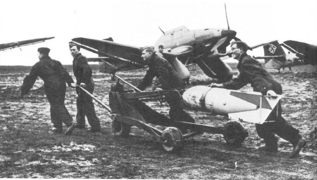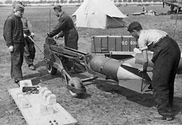 | I never quite understood how Academy composed their ground vehicle sets, and this one really is an odd one out, even to Academy's standards. Well, whatever... After having built the Schwimmwagen and while I was busy finishing the Opel, I couldn't stand the thought of having a box with only a bomb trolley in it taking up space on the shelf, so I decided to build it. I also happened to have a diorama under construction that could accept it, so I had all the excuses I needed. (A scan of the sprues can be found here, while a scan of the manual can be found here.) Below you can find some pictures of the real trolley. I couldn't really find much information on the thing, so this is what I had to go by.