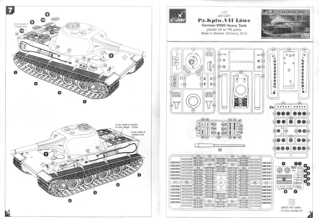 The Panzerkampfwagen VII Löwe(Lion) is, among all the so-called "paper panzers", one of those which came really close to effective production. It was originally designed by Krupp in the early months of 1942 as Pz.Kpfw. VII Löwe (VK7201). Designers planned to build two variants of this vehicle: light (leichte) variant would have frontal armor protection of 100mm and it would weight 76 tons. Heavy (schwere) variant would have frontal armor protection of 120mm and it would weight 90 tons. Both variants would be armed with 105mm L/70 gun and coaxial machine gun. It is known that 90ton schwere Löwe was to have its turret mounted centrally and in overall design resembled future Tiger II. In late 1942, this project was cancelled in favour of the development of the Maus. Judging from blueprints, the tank proposed by Armory, having a central turret, is the leichte Löwe. This vehicle gained quite a bit of popularity in the famous World of Tanks (WoT) online multiplayer game, so that Armory provides a "historical" and a WoT version (with different muzzle brakes and engine hatches on the back panel). |