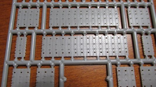 Some preliminary observations The engine deck is certainly a weak spot, with many casting imperfections, and it was not corrected during retooling; however, the grills can be covered with the supplied PE parts, so Armory found an elegant way to circumvent the problem. Detail on the inner tracks is rather soft but more than sufficient. |