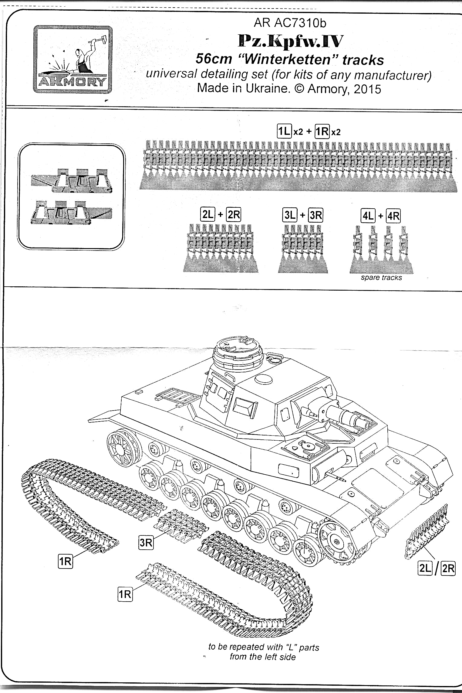 After the first encounters with the Russian climate (and its effect on the road conditions), Germany developped wider tracks for their Panzer III and Panzer IV (and their derivatives). Two types saw service: Winterketten and Ostketten. The former (which appeared first, in the Winter of 1942/43) was basically a standard track with extensions (similar to "duckbills" for Sherman tracks), while the later was a wider, more uniform track. This set of Winterketten is based on a late type track (with chevrons), which is the reason for the "1944-45" label. I am not quite sure how common this was, as I always believed that Winterketten would have been supplanted by Ostketten by that time. The parts