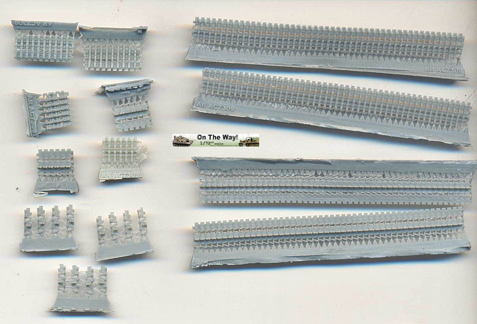 The parts are well cast, with very discrete sprue gates (the tracks have a tendency to remove themselves from the casting blocks without damage) and minor amounts of flash. No casting defaults were found. Pitch is spot on for 1/72, but width is closer to 605mm, instead of 560mm. While the instruction leaflet shows the parts that you should get, and where they should go, there is no indication how to get them to take the shape that they are supposed to take. I have heard this is best tackled using a hair dryer but I will need to see how this works out.